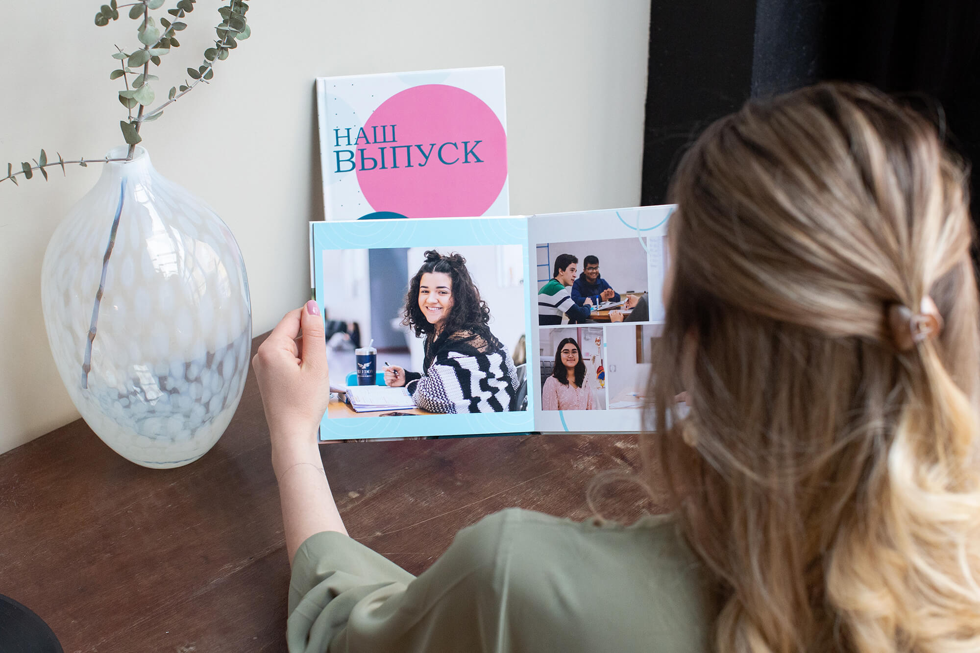 Альбом Премиум — это книга с плотными фотостраницами. Благодаря тому, что корешок книги раскрывается на 180 градусов, вы можете размещать изображение на весь разворот.